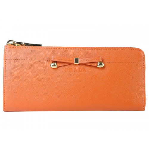 Portefeuille Prada Saffiano à fermeture éclair avec nœud décoratif orange
