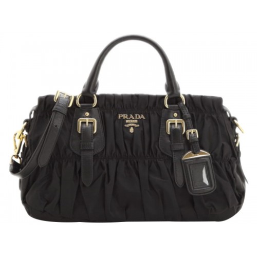 Sac à main Prada Tessuto Gaufre en nylon noir avec poignée supérieure