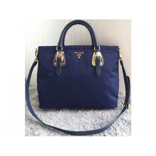 Sac cabas Prada Tessuto en nylon et cuir de veau souple bleu