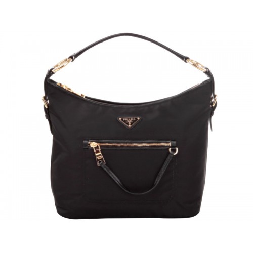 Sac hobo Prada Tessuto en nylon noir avec garniture en cuir