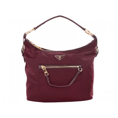 Sac hobo Prada Tessuto en nylon bordeaux avec garniture en cuir