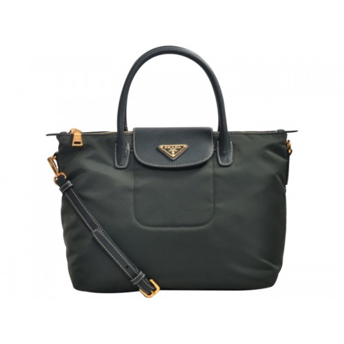 Sac cabas Prada Tessuto en nylon avec garniture en cuir vert foncé
