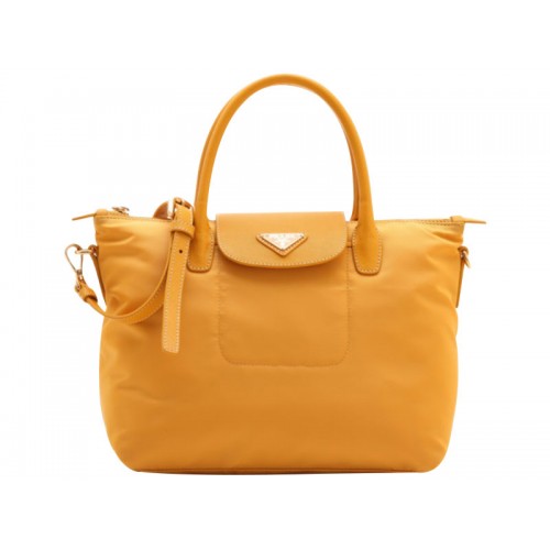 Sac cabas Prada Tessuto en nylon jaune avec garniture en cuir