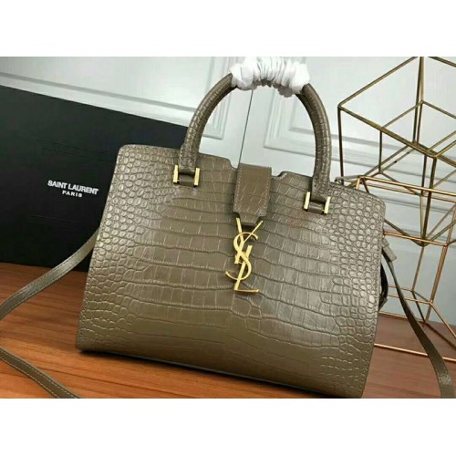 Sac cabas Saint Laurent YSL petit modèle en cuir lisse gris