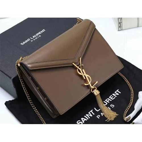 Sac à fermoir monogramme Saint Laurent Cassandra en cuir de veau marron