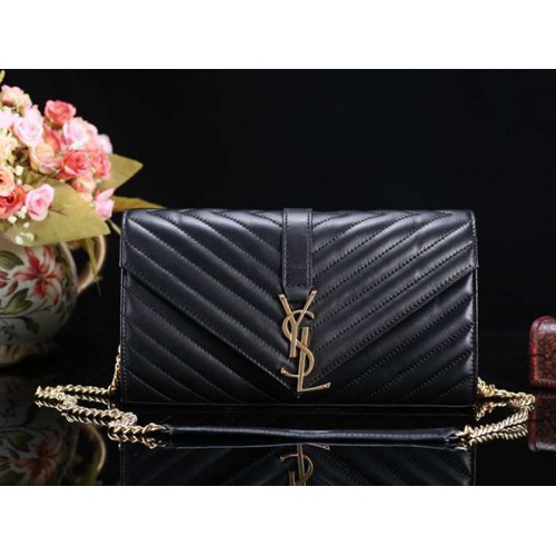 SAC À RABAT CLASSIQUE AVEC SIGNATURE YSL EN MÉTAL DORÉ, COUTURES MATELASSÉ ET DOUBLE SANGLE DE CHAÎNE GOURMETTE EN MÉTAL QUI PEUT ÊTRE PORTÉE EN TRAVERS DU CORPS OU SUR L'ÉPAULE.