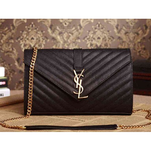 SAC À RABAT CLASSIQUE AVEC SIGNATURE YSL EN MÉTAL DORÉ, COUTURES MATELASSÉ ET DOUBLE SANGLE DE CHAÎNE GOURMETTE EN MÉTAL QUI PEUT ÊTRE PORTÉE EN TRAVERS DU CORPS OU SUR L'ÉPAULE.