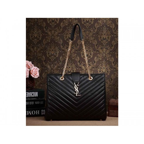 Yves Saint Laurent Classic Monogramme Shopping Bag In Black Lambskin Matelasse Leather