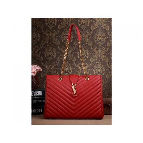 Yves Saint Laurent Classic Monogramme Shopping Bag In Lipstick Red Grain De Poudre Textured Matelasse Leather